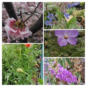 今週のお散歩コレクション コラージュがうまく出来てないから 肝心のお花が欠けてるわらい😅 いつもと違うコースの桜が見頃でした。 この辺りの河津桜はもう葉桜なので 今咲いてるのはオオシマザクラかな? 自信ありません。
