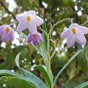 お散歩先の植物園のお花。 ルリヤナギだそうです。 お花は下を向いて咲いているので下から覗き込んだら 🍆のお花みたい。 ヤナギではなく🍆のお仲間だそうで納得。 名前はたぶん葉っぱの見た目からかな・・・