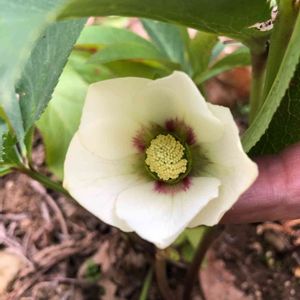 (連投🙏) 🌸クリスマスローズ🌸 この子の親は、大株で一昨年の秋に株分けに挑戦したけど、 大株すぎて持ち上げられず(60センチ幅、深さ30センチ)、同じところに植え直したの💦 株分けしないから?乾燥もあって 花数は10分の1くらいになっちゃった💦 もう大きいシャベルで、ザクッと切断するしかないんでしょうね😂 怖くて昨秋もそのまんま💦 今年の秋、ザクッしますか〜😂💕⛏🪚