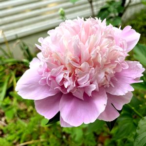 (連投🙏) 芍薬💗 (ピオニー ソルベット)が ひとつ咲きました🎵 もう少し濃い色でしたが、形はこのくらいの丸く咲ききった頃が素敵💓💓💓 まだ幾つか蕾があるけど、 順番に咲く気らしいです(*^_^*)