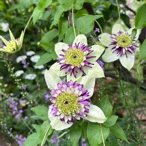 こんにちは😃 やっと雨上がったか☁️まだ霧雨か🌧️ picは、ビエネッタ🤍💜これが1番開いた状態なのでしょうか💕 大体様子が分かって来ました。 我が家のクレマチスの中で花首が1番長い🤣 15センチくらいでしょうか❣️ 長いでしょう〜😆笑笑 来年はこのビエネッタをどのバラとコラボさせようかな🤭💕💕
