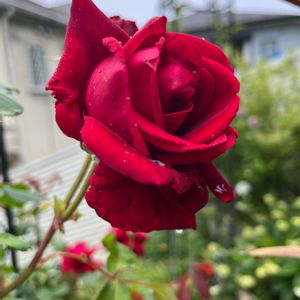 こんにちは😊 picは、らしくない🌹イブピアッチェ🌹 植え替えを怠ったから状態がイマイチのところ 先日の台風の様な☔️🌀で、🤳撮り損ねたので 次は絶対に❣️と思っていたら〜😅 色も違うし〜💦まぁこんなこともあるよね〜💦 でも、ありがとうだわぁ🤭💕💕 🏷️水曜ローズショーに参加します
