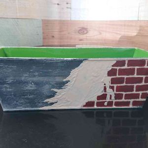 リメ缶第2弾 うぅ~ん、塗る順番間違えたのと 煉瓦の作りが甘かった…盛るところも… 次にまたチャレンジだ~👊✨