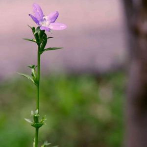 ヒナキキョウソウ キキョウ科キキョウソウ属 花期:春〜夏 葉腋に直径15mmほどの紫色の星形の花を一つずつつけるようですが、多くの花が閉鎖花となるそうです。 北アメリカ原産の帰化植物だそうです。 私はこの花を初めて知りました(๑˃̵ᴗ˂̵) 先日GS友さんの投稿見てとても可愛いくて出逢いたい❣️と思っていたら。。 なんと翌日、🌄が沈もうとする時間に出先の駐車場コンクリート隙間で咲いているこの子を見つけました(*´艸`) 写りは悪いのですが、次回逢える保証はないので投稿します😄