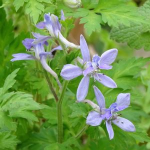 セリバヒエンソウ(芹葉飛燕草) キンポウゲ科の1年草 花期:4月〜5月 フォロワーさんの投稿見ていて在来種の山野草と思っていました。見つけた時にはニヤニヤ☺️してしまいましたが外来種のようです。 帰化植物は本来、厚かましく、はびこるものなのに、セリバヒエンソウには春の妖精のような風情があって奥ゆかしい、との記載のものもありました。 見ていると本当にツバメが飛んでいるような名前の通りのお花です。 爽やかな色でとっても可愛いお花です♫