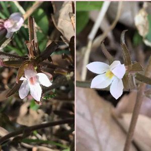 クチナシグサ 別名:カガリビソウ ゴマノハグサ科 花期:4月〜5月 1cmにも満たない小さな目立たない花です。 自身でも光合成により成長できるが、半寄生植物。 半寄生植物とは、他の植物の根に寄生しているということです。