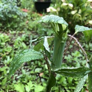 ついに…ついに…!!! 正体を表したテンナンショウさま❤️ いやーホント。 いったいどっから来なすったんでしょうねぇ。 またうまいこと花壇の中って🤣🤣🤣 なんにしてもようこそ我が庭へ✨ 末永くよろしくです~❀(*´▽`*)❀