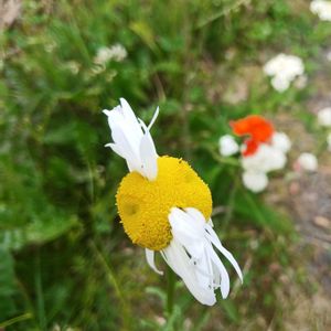 ♡♡仏蘭西菊 フランスギク 合体!👀 頭の禿げたフランスギク みっけ!!(2枚目) と思ったら? なんと、2輪がぴったりと合体❗ コウリンタンポポも どうしたのと聞いてます