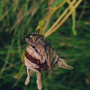 ♡仏蘭西菊 と 斑髭亀虫 花を終えたフランスギクに 退場を促すべくハサミを持って近付くと… なにやらキレイな模様が 初めて逢う虫 名はブチヒゲカメムシ!