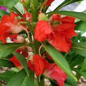 八重咲きホウセンカ 近所の方が種蒔いて 苗を頂きました 可愛く咲いて良かった💞 二枚目 ど根性ペチュニア 側溝の中からひとりばえ 花壇にはなかなか発芽しないのになぜか側溝😱 三枚目 ネギ畑のような 小さな畑コーナー 4枚目 プランターのオクラ
