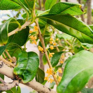 大好きな金木犀💕 咲き始めました☺️🏵 金木犀の香りと、この前の台風で傷んだカツラの葉からの香り。 玄関前がいい匂いで溢れていい感じ☺️☺️☺️ ずっと欲しくて、家を建てた時に会社の皆さんからお祝いで頂いたものです。 最初の数年はなかなか葉が増えず… 心配しましたが去年くらいから剪定が必要なくらい繁ってきて嬉しい٩꒰๑ ´∇`๑꒱۶✨✨ 金木犀は、植えてから最初の2〜3年は調子が出ないと聞いた事があるけど、どうやらその期間は過ぎてくれた模様。 5年はかかったぞ(。ó .̫ ò。)長かったなぁ