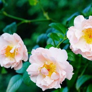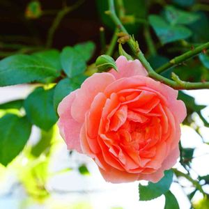 おはようございます☀ ようやく雨が上がりました✨ パーゴラの上の方でなんとか咲いてくれているERストロベリーヒルさんも朝日に嬉しそうです💕 昨日投稿の薔薇イスパハンとパーゴラの上で交わるのは来年になるかしら✨✨✨
