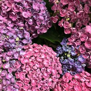 4種類の紫陽花。ピンクアナベル、ポップコーン、アナベル…手前のはなんだっけ?