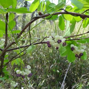 今日のお花🌿アケビ🌿木通 アケビ科アケビ属のつる性木本 アケビの葉や花はけっこうあちこちで見かけますが、野外で果実🟣を見たのは雑木林で一度きり😞 そのアケビはコブシに絡みついていたせいか、切られてしまいました😭 アケビもある程度年数が経たないと果実🟣は実らないのでしょうね。 これからも探し続けます💪😊 2024.3..31撮影