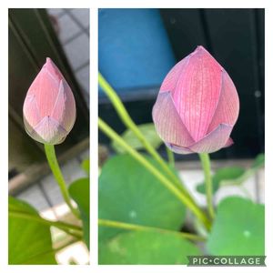 タネからトライしたハスは、早くに失敗。😭ドライブ中に通りかかった近所の花屋💐さんにハスを販売してるの見つけて、ついつい購入してしまいました。ふっくらしてきました。🌷。毎日いつ咲くのか楽しみで、ワクワクしてます。🎶