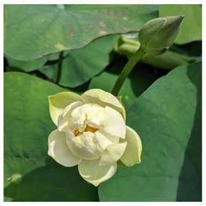 雀ん家の茶碗蓮白花。 姉に撮って貰いました💕 9時半の様子です。 白花はデリケート、雨降りに弱いし気温にも敏感🤣 1日かけてゆっくり開花するんだろうな〜🤗💕🐥
