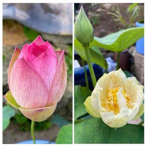 今朝の茶碗蓮🤗 6時半の様子です、ピンク花が咲き始めました。 白花は7分咲き。 未だ時期が早いから開花もゆっくりですね❣️ 昨日、プレゼントクイズ🎁への参加募集中で〜す🤣 詳しくは昨日のpicにて🐥
