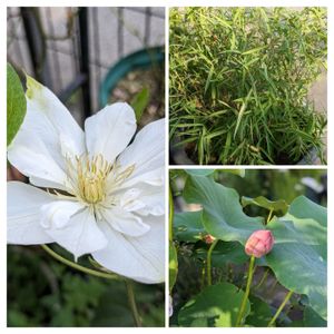 令和7年7月7日ですね✨ 七夕🎋 右上 💚笹 一昨年(おととし)いつか、七夕飾りに使いたいと思ってお迎えしました😊 あまり、縦に大きくなってない😅 右下 🩷茶碗蓮 蕾がふくらんでワクワク✨ 左 🤍クレマチス 何だか見慣れないコが🤔 春姫の鉢です 小さなポット苗でお迎えしお花を見るのも初めてで…どうやら一番花特有のちょっと小さな、形も違うコが現れたんだと思います😌暫く見守ります