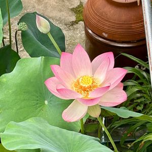 今日のお花 💚ハス💖 と言っても、我が家の茶碗蓮です😊 暑さのせいもあるのか…蕾から開花までが速い😆 今日は、もう開ききって✨あまり綺麗ではありません😅 やっぱり、膨らみかけてる時が1番綺麗✨かな🤔