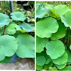⬅️荒神谷古代蓮(大賀蓮)PHVさんから頂いた種から栽培2年目 やはり大型蓮は葉が大きいです。 来年の3月の株分けが楽しみ。 来年開花するかな〜🤔 ➡️中国からの輸入蓮、種から栽培1年目 一年目で普通の大きさの葉が立ち上がっています。 花芽が上がって来てもおかしくない状態。 来年もしかしたら、両方とも開花するかも🤔