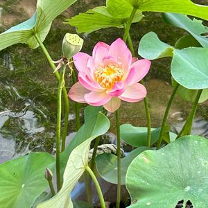 今日は、宮崎県の友が家族で蓮池に来たよ💓 菖蒲谷キャンプ場入り口の案内板で待っていると、甲羅の長さ30cm程のスッポンを発見。 なんでこんな所に〜😱 今日は4輪の茶碗蓮が咲いていました。