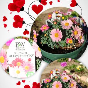 PWさんの マーガレットストロベリーホイップ🌸 買い物に出ると ついつい寄っちゃう園芸コーナー🪴🪴 可愛くて買っちゃいました😁 上手く育つといいなぁ😊 まだまだ寒いので、早く春が来てほしい💨 そうなると今は 寒くて引きこもりがちな私も お出かけ ⬇️ 園芸コーナー ⬇️ 見るだけのつもり ⬇️ 思わず買っちゃう🤣🤣🤣 あるあるです😆