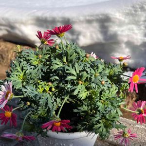 PWマーガレット ストロベリーホイップ🌼 欲しかったので買えてよかった💕 後ほど鉢増しします シンプリーコーラルと葉っぱがちがう🤔 春菊みたいな葉っぱしてます🤣 結構暴れてる笑