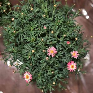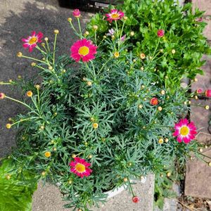 PWマーガレット ❁⃘*.゚🍓ストロベリーホイップ🍓❁⃘*.゚ 3年目株🌸12/20頃から咲き始め、1/13頃から半月の間、満開状態継続中です❣️ ちゃんとお日様に当たっていれば、赤い蕾から赤いお花が咲いて、徐々にピンクに色変していくのに、ここの所の天候や諸々あって、お外に出してあげられなくて日光浴不足でした💦そのせいか蕾の色が白やピンクに…。株全体の色合いもパステルトーンになりました🌸 これはこれで可愛いですが、また色づいて欲しいな*🌸ꕤ*❤️˸*