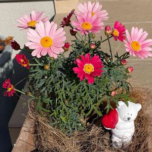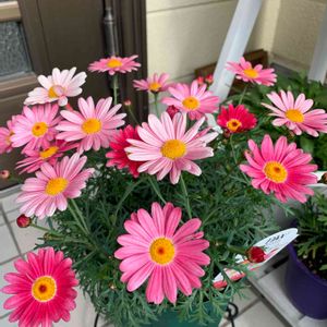 最強寒波が来る前に🥶🍃 我が家のPWさんのマーガレット 集合させてみました🌸 ホワイトモカ、シンプリーコーラルは 同じ日の10月にお迎え✨ ホワイトモカはまとまりが良く、 コーラルさんは我が家のマーガレットで 1番お花が大きめ💕 バブルガムブラストは1月にお迎えした ため株は小さめですがはっきりとした 色合いのピンク💖 ストロベリーホイップは4月にお迎えした唯一の夏越し👏💓現在花数が増えてきました✨咲きはじめは濃いピンクで徐々に色が薄くなっていってグラデーションになっています😊❤️ 私の趣味でピンク率高め😅笑💦 この寒い寒波を乗り越えて春の満開が楽しみなコたちです🤭❣️