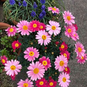 ピンクの花が沢山咲いてきました♪ マーガレットは昨年秋購入。アリッサムは挿し芽で増やしました。
