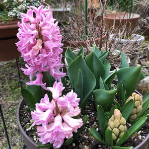 ヒヤシンス 同時に植えたのにこの差 いい香りです チューリップはもう少しあとですね