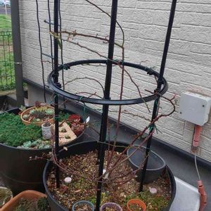 こんにちは✨😃❗️ 新芽がお行儀良く並んでおります( *´艸`) 去年は風でオベリスクがゆがんでしまったのよね~ まぁひっくり返らなきゃいっか(笑) おっきくなぁーれ(・ω・´)