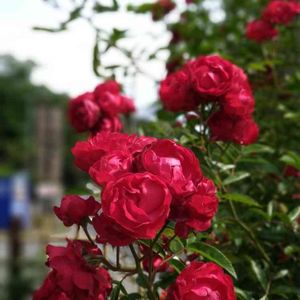 東武トレジャーガーデンの紅玉のアーチ。赤黒い小輪のつるバラで珍しいですよね。
