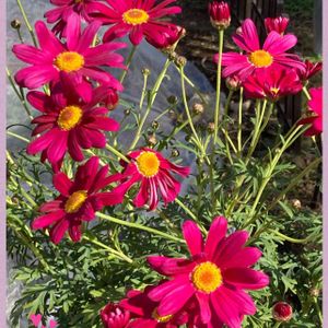 鮮やかな色に 魅了されて 買ってしまいました❣️明日 植えます。多年草っていうのも 魅力的だと思いません?❣️ マーガレットバブルガムブラスト 咲きながら 色も 変化するんですって💓 お花 初心者の私は 感激してます❣️ …鉢植えにして 玄関の外?に(日当たり💮)置いておいていたのですが、、だんだんヤバそうになり 慌てて地植えにしました❣️狭い花壇がよりいっそう にぎやかになりました❣️