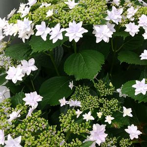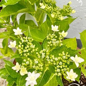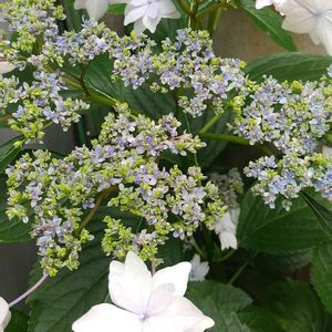 墨田の花火🎇 微妙に水色に染まってきてる花🤭 ガクは白くて涼しげ💙 信金さん今年もチラシ持ってござった~♪ 6/14(金)信金の日(*・ᴗ・*)و 花苗もらいに行くぞ(笑)