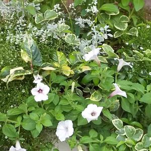 去年に引き続き、 地植えにほぼ放置で モリモリ咲いてくれる 白ペチュニア☺️💓 ピンクの部分も出てきました♬