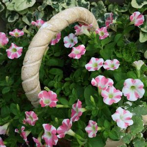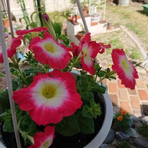 ミスマーベラス 目を惹く色と模様 美しい😊 ただ、こんもりキッチリ育つというより茎が細長い?暴れる系? うちの子が栄養失調なだけかしら😅 雨に打たれてダレダレ中😓 剪定で何とかしたいけど☹️ 今年はペチュニアがイマイチな年😩