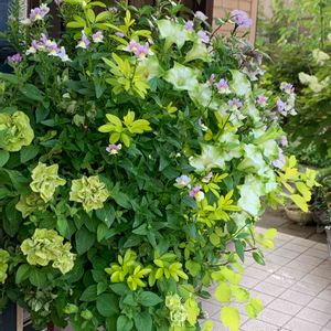 金色に輝くハンギングバスケット 左下の、ペチュニア抹茶ラテが 沢山咲き始めました💕 ジャスミン、ピットスポルム、 金色に輝いてます。 植え込んだ頃より ひと回り大きくなり、 ツボミだった花が咲き 表情の変化が 楽しめます💕 ほんとに大好きなハンギングで 毎日、目肥を与えてます! 見てるよ〜可愛いよ〜ってね💕