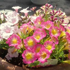 おはようございます😊 手前サフィニアブーケ💐 奥 ミリオンベル バターポップコーン🍿 この後✂️します☺️