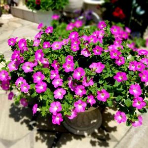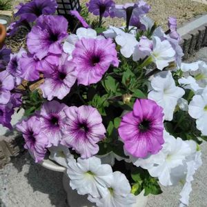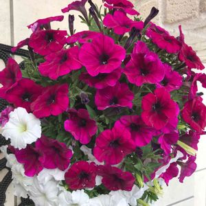 ポンポン咲くペチュニア HCで株が乱れてて半額で売っていたペチュニアさん 切り戻し✂️してこんなに咲いてくれました😊