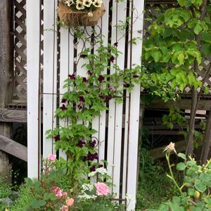 クレマチス咲いてきました。 ペチュニアといい感じです(^ ^)
