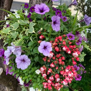 カインズのあふれ咲きペチュニア ラズベリージャム 5/10頃植えて3週間、モリモリ咲いてきました・*:.。❁