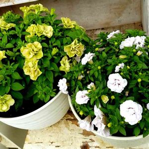 八重咲きペチュニア ①朝倉ろまんシリーズ 抹茶ラテ 【5月11日植え付け】 ②ぎゅぎゅ ダブルベリー 【5月15日植え付け】