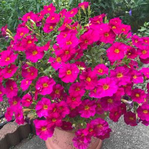 サフィニアブーケ💐 キューティハニーピンク💠 ただ今満開💖 でも明日、【アート、フリル、ブーケ、アズーロなどなど】みーんな切り戻しします💕 来週からの旅行に備えて〜💖