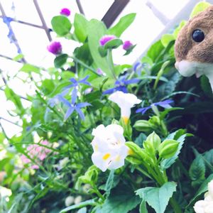 ペチュニアとイソトマとブルーサルビアと千日紅とうさぎさん🐇🎵