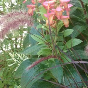 昨年冬に 玄関の中に取り込んで冬越ししたパープルファウンテングラスが もう穂をつけて涼しげにゆらゆらと🌿 ハイブリッドジギタリスは小さめの二番花たちがたくさん咲いてます✿*:・゚