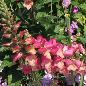 こちら1年目のハイブリッドジギタリス。ノーマルなジギタリスよりかなり花付きが良い。 背景はセンテッドゼラニウム。左端のテッポウユリも徐々に蕾が大きくなってきた。