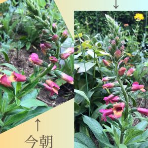こんばんは 遅くにすみません。 ジギタリス が咲いていますが、不思議🤔今朝と夕方の違い❗️ 明日はどうなっているのかしら?