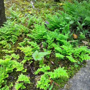 本当は苔むした庭を母は目指していたのでしょうが 離れて住む娘には朝晩の水やりは難しく 昨年の猛暑は数えるくらいしか水やりをしなかったので 苔の代わりにシダが地面を覆ってくれています。 じめじめ大好きシダ祭りギリギリ間に合いましたか?