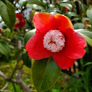 今日の母の庭 卜半椿が満開です❤️❤️❤️ 月光と書いてガッコウというそうです。